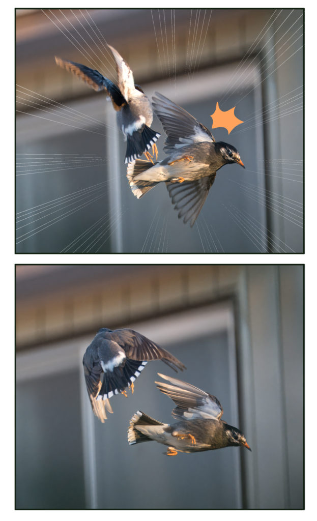 見て!ムクドリ君がドロップキックされているよ、かわいいね!